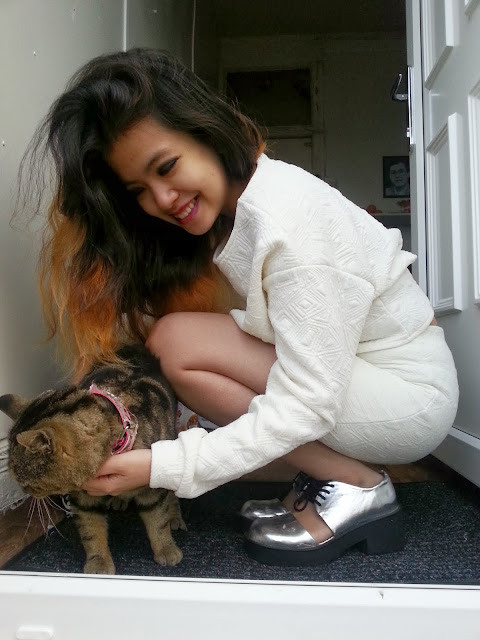 Wooow all white looks awesome on you! especially loving the shoes (and the cat) xxx